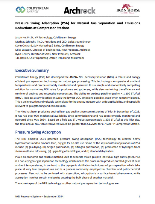 10 Oct 2024 ColdStream MaCH4, White Paper October 10, 2024 ColdStream MaCH4 White Paper NGL Recovery Solution (NRS) Download MaCH4 White Paper
